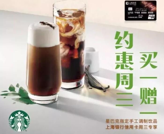 活動(dòng)內(nèi)容:每周三持上海銀行信用卡實(shí)體卡片至深圳地區(qū)指定合作門店,資格驗(yàn)證通過后刷卡即享指定手工調(diào)制飲品買一贈(zèng)一。