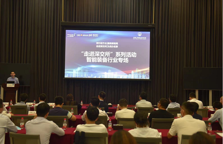 本次活動(dòng)以智能裝備行業(yè)專場宣講與圓桌論壇為主,多家優(yōu)質(zhì)智能裝備企業(yè)參加?;顒?dòng)開始,深圳證券交易所市場發(fā)展部與浦發(fā)銀行交易銀行部相關(guān)領(lǐng)導(dǎo)從國家政策面、經(jīng)濟(jì)面分析了中小企業(yè)、科創(chuàng)企業(yè)所處的歷史發(fā)展機(jī)遇,并介紹了“走進(jìn)深交所”系列活動(dòng)的初衷與意義——“信息共享、流程互通、功能互補(bǔ),打造從0到1、從IP到IPO,共建為中小企業(yè)服務(wù)的金融生態(tài),攜手為國家經(jīng)濟(jì)發(fā)展貢獻(xiàn)力量”。隨后,深圳證券交易所、浦發(fā)銀行與招商證券介紹了智能裝備行業(yè)發(fā)展趨勢下的投融資規(guī)劃、上市路徑、支持政策以及相關(guān)金融服務(wù),并針對經(jīng)營發(fā)展困惑同與會(huì)企業(yè)進(jìn)行一對一、面對面的交流。