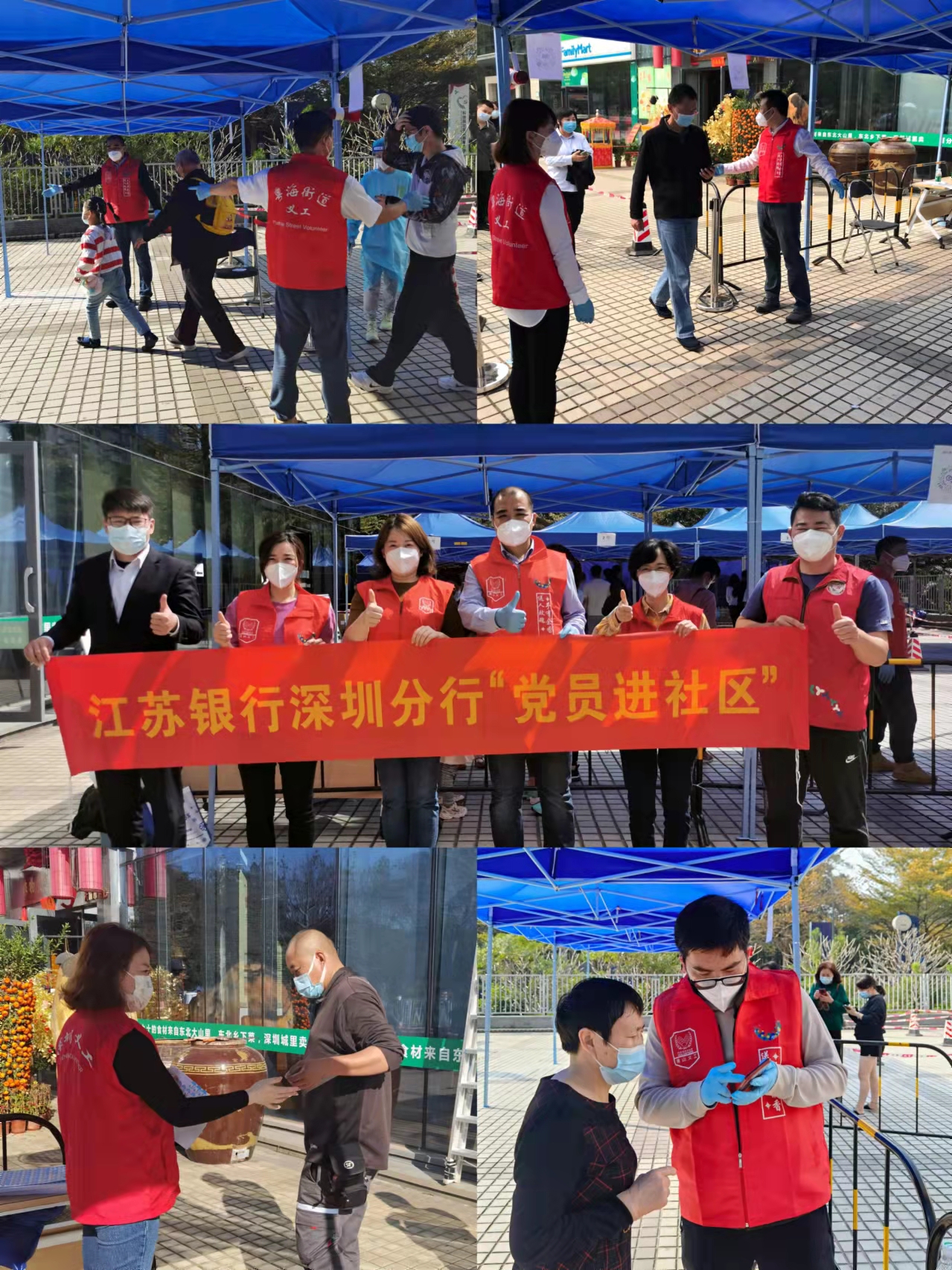 江蘇銀行深圳分行營業(yè)部黨支部書記、總經(jīng)理楊晉國率隊趕赴科技園社區(qū)檢測點,積極響應(yīng)南山區(qū)金融行業(yè)協(xié)會齊心抗疫號召,協(xié)助社區(qū)開展核酸檢測工作,引導群眾有序排隊、測溫登記、掃碼檢測。欲酬凌云志,當效逆行人。江蘇銀行深圳分行黨員同志始終與人民群眾堅守在一起,齊心協(xié)力、迎難而上。