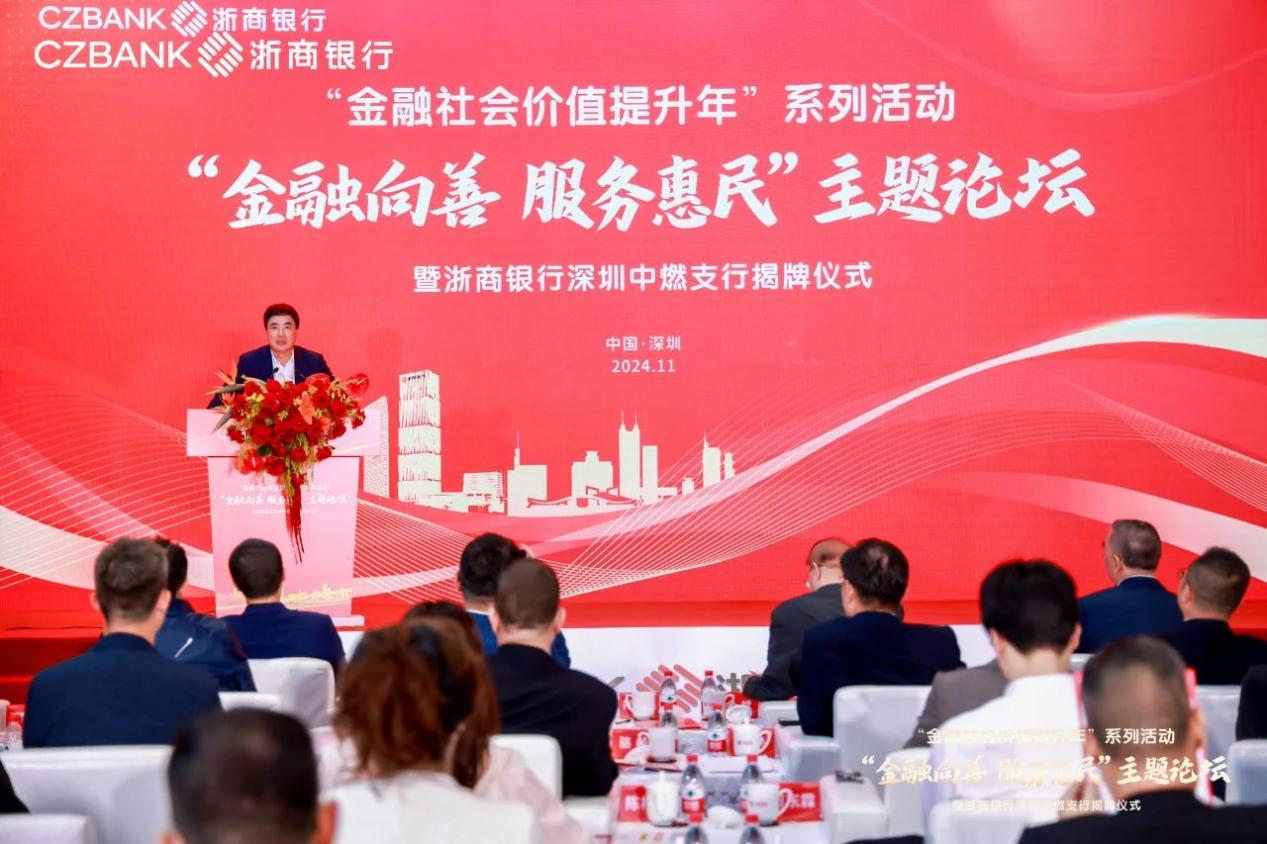 深圳新聞網(wǎng)2024年11月6日訊(記者 朱琳 通訊員 劉璇)為深入貫徹黨的二十屆三中全會和中央金融工作會議精神,11月4日,“金融向善 服務(wù)惠民”主題論壇暨浙商銀行深圳中燃支行揭牌儀式在中國燃?xì)獯髲B舉行。本次活動也是浙商銀行“金融社會價值提升年”系列活動之一。國務(wù)院發(fā)展研究中心原黨組成員、副主任余斌,中國上市公司協(xié)會會長宋志平,浙商銀行黨委書記、董事長陸建強(qiáng),中國燃?xì)饪毓捎邢薰径戮种飨瘎⒚鬏x等嘉賓出席活動。