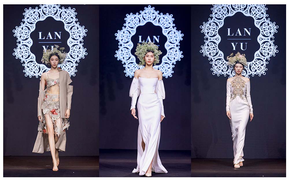 現(xiàn)場(chǎng)更有LANYU高定禮服展示,將中式美學(xué)意境與西式時(shí)尚剪裁完美融合,同時(shí)加重了蘇繡非遺元素的應(yīng)用比例,將更多的非遺技藝融入服飾創(chuàng)作中,呈現(xiàn)出超高藝術(shù)水準(zhǔn)。