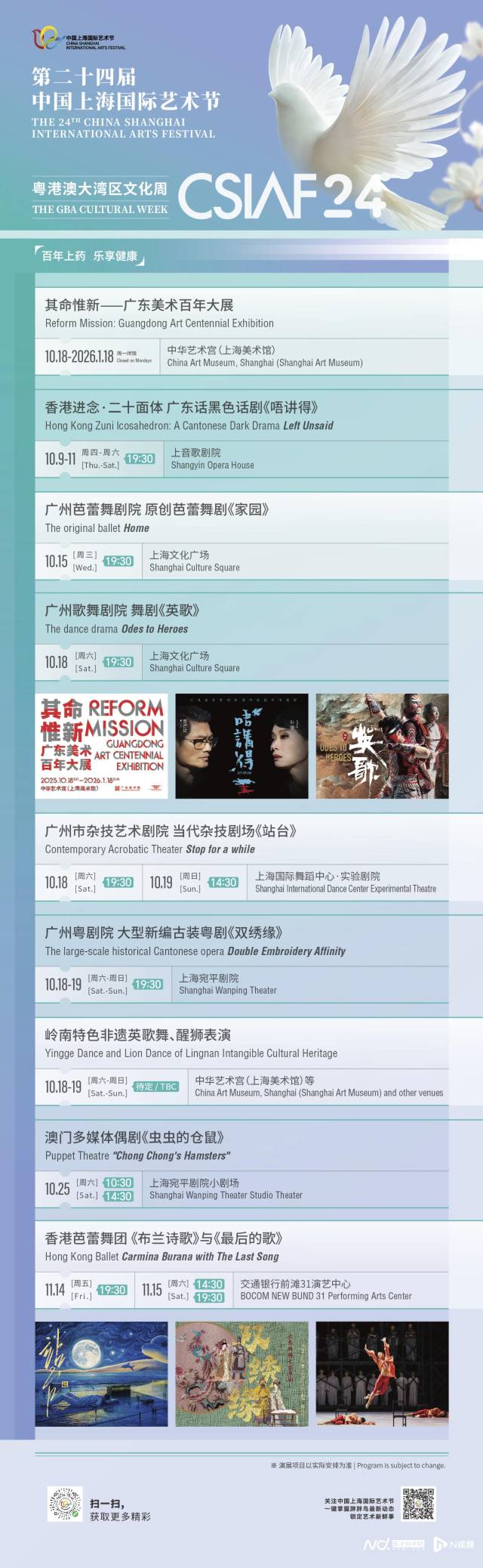 附:第二十四屆中國(guó)上海國(guó)際藝術(shù)節(jié)“粵港澳大灣區(qū)文化周”文化活動(dòng)節(jié)目單
