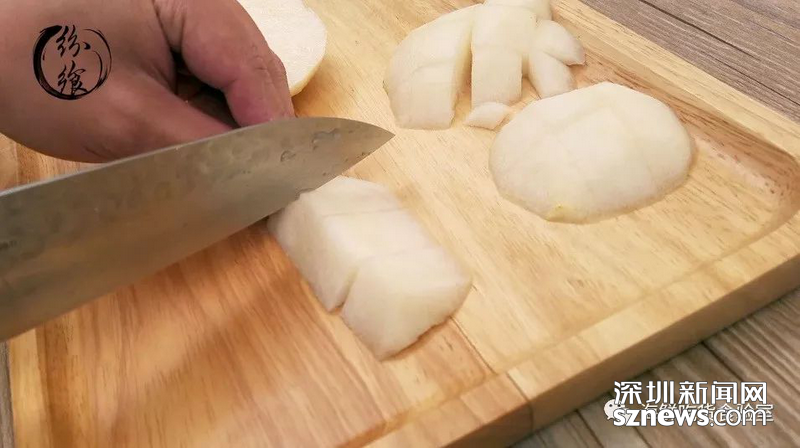 將雪梨去皮切塊。
