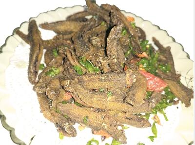 除了煲湯,清遠人還喜歡一道香炸泥鰍,抓來的泥鰍除去腥味和泥沙后,用雞蛋、料酒、鹽及面粉等混合調(diào)好味料,涂抹泥鰍,腌制半小時,再放入熱油鍋中翻炸,一條條泥鰍數(shù)分鐘就被炸至金黃焦脆,頭尾卷曲,看似盤龍,香氣誘人,出鍋后品嘗,又酥又爽,特別是焦皮下的肉骨不分,脂肪和脆骨交融,嚼起來回味無窮。
