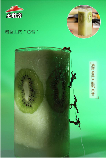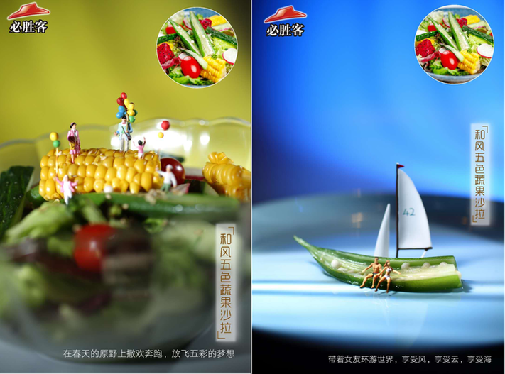 在深圳,必勝客更是腦洞大開(kāi),在最新的2018春季菜單,用迷你人偶結(jié)合旅游的場(chǎng)景進(jìn)行創(chuàng)意拍攝。天馬行空的想象,獨(dú)特的視角,妙趣橫生,讓人領(lǐng)略美妙“風(fēng)景”的同時(shí),不禁食指大動(dòng)。