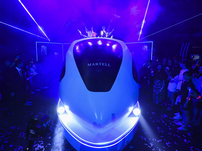 派對的熱度逐漸攀升,正當全場沉浸于馬爹利所營造的新奇派對氛圍中時,舞臺燈光倏然又陷入黑暗,所有人的目光被吸引到吧臺。聚光燈下,又一列馬爹利名士派對列車的獨特子彈車頭穿越光影迷霧,載著舞者與電子音樂先鋒DJ耀眼登場。舞者們揮舞著派對旗幟,引領嘉賓跟隨音浪一起盡情搖擺,雙重的電音震撼更是讓派對現場燃至沸騰。舞動的間隙,嘉賓們還可為自己選上一杯專屬飲品,開啟味蕾上的全新享受。愈發(fā)強勁的音浪和灼熱的現場氣溫將這個打破邊界的派對之夜推向了高潮。