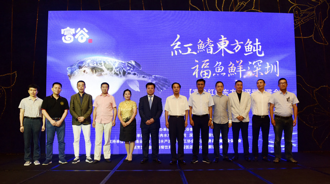 中國漁業(yè)協(xié)會趙興武會長在致辭中盛贊富谷紅鰭東方鲀,發(fā)出從深圳起步“每人多吃一條 多吃一斤河豚魚”吃河豚魚支持河豚魚產(chǎn)業(yè)發(fā)展的倡議。