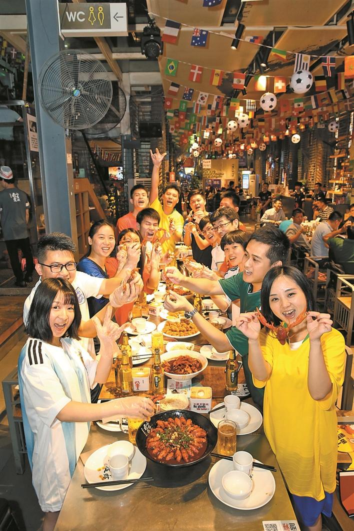 但這次世界杯期間,許女士找到了一個好去處:“看球其實不重要,重要的是大家聚在一起,但口味一定要找大家都能接受的,所以挑來挑去最后選擇了龍巢。”在昨晚的龍巢店內(nèi),一整盤的蛋黃味小龍蝦被許女士吃個精光:“這是吃得最暢快的一次,整個氛圍也很到位,接下來的比賽就扎根在這里了?!?/p>