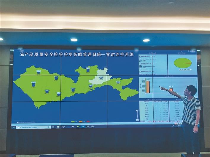 對于農(nóng)產(chǎn)品質(zhì)量安全檢驗檢測智能管理系統(tǒng)將來的功能設(shè)想,農(nóng)檢中心工作人員也向記者進行了模擬展示,整個智能管理系統(tǒng)將會有“數(shù)據(jù)查詢”、“抽檢動態(tài)”、“實時展示”等多種功能。在“實時展示”中,記者看到屏幕上出現(xiàn)了深圳十區(qū)(新區(qū))的電子地圖,每個區(qū)(新區(qū))的農(nóng)產(chǎn)品檢測合格率都可以按照年度、月度、每天進行顯示,不僅如此,每個區(qū)(新區(qū))所有街道的檢測合格率也都能在電子地圖上展現(xiàn)出來。