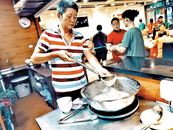 自2017年7月1日開(kāi)業(yè)以來(lái),面向環(huán)衛(wèi)工人、60歲以上老人和困難人士,“李三好火鍋”每天派發(fā)100份免費(fèi)早餐。一份免費(fèi)早餐包括兩個(gè)饅頭、一碟配菜(蘿卜干、拍黃瓜)、任吃的南瓜粥。