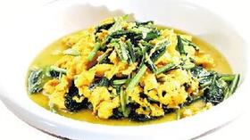 曾經,他們試過用上百種方法來試烹制灰桃菜,最后發(fā)現,最佳組合依然是金沙做法,用咸蛋黃推出金沙湯底。