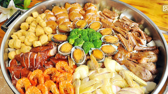 盆菜是中國香港特色菜肴之一,一盆菜里薈萃了百菜百味,中國香港人喜歡逢年過節(jié)時吃盆菜,賦予盆菜喜慶團聚的意義。