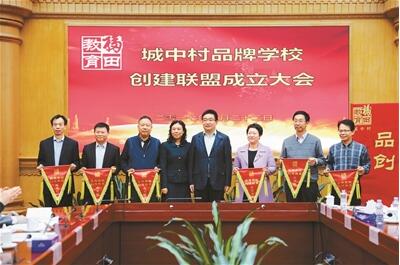 福田區(qū)領(lǐng)導為“城中村品牌學校聯(lián)盟”成員校授旗。