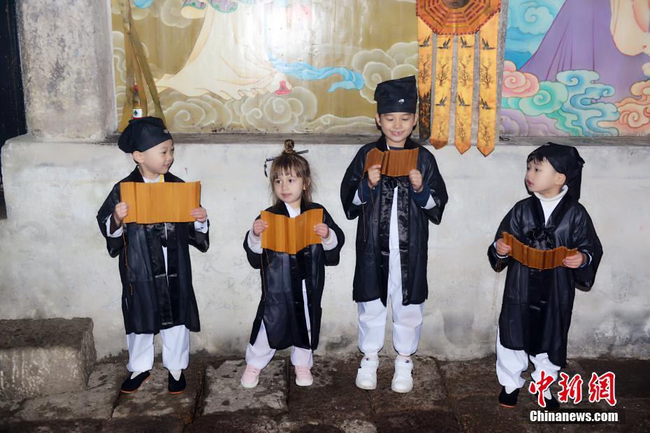 萌翻了!中外萌娃身穿道服三清山學國學