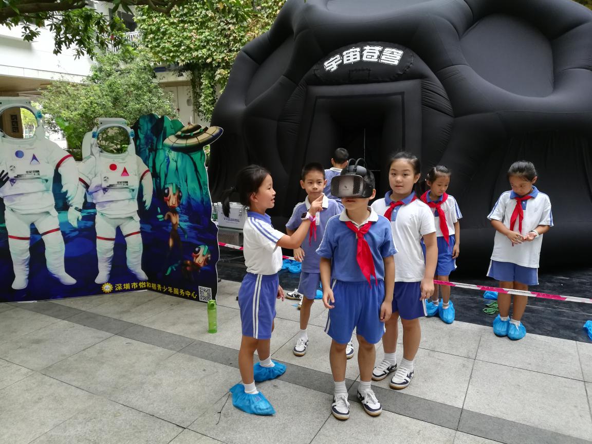 “流動(dòng)天文館”通過(guò)模擬星空演示、太陽(yáng)系演示、VR等天文互動(dòng)體驗(yàn)讓學(xué)生們身臨其境,上演生動(dòng)的在宇宙中遨游情節(jié),給學(xué)生們帶去高緯度精神饕餮大餐。小學(xué)部一二三年級(jí)一千多人參與了活動(dòng),未來(lái),宇宙蒼穹-流動(dòng)天文館還在梅林文化節(jié)及學(xué)??萍脊?jié)繼續(xù)精彩亮相;為推動(dòng)青少年天文科普做好下一步工作。