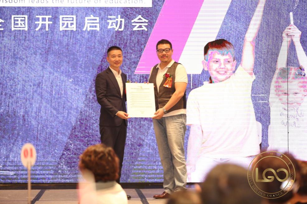 會(huì)上,金潔董事長向《爸爸快長大》中宋大楠的扮演者馮粒先生頒發(fā)了“愛心大使”委任狀,宣布成立家長學(xué)院。馮粒先生作為小金桔China Basics首位“愛心大使”,鼓勵(lì)社會(huì)各界力量積極參與,提倡科學(xué)育兒,積極探索中國文化的傳承,實(shí)現(xiàn)“中國夢(mèng)”走出去。
