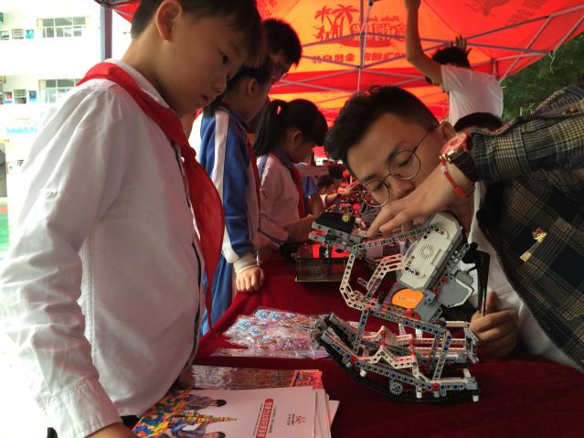 同期,愛(ài)匯百變教育科技有限公司也給同學(xué)帶來(lái)了炫酷多彩的編程大餐。通過(guò)對(duì)EV3編程機(jī)器人項(xiàng)目LEGO方針機(jī)械機(jī)構(gòu)以及LEGO圖形化編程展示,邀請(qǐng)現(xiàn)場(chǎng)同學(xué)進(jìn)行對(duì)套件進(jìn)行組裝、編程控制,普及編程和電磁感應(yīng)現(xiàn)象、電動(dòng)基本原理、電路等物理知識(shí),鍛煉學(xué)生科學(xué)創(chuàng)造思維,培養(yǎng)學(xué)科興趣。