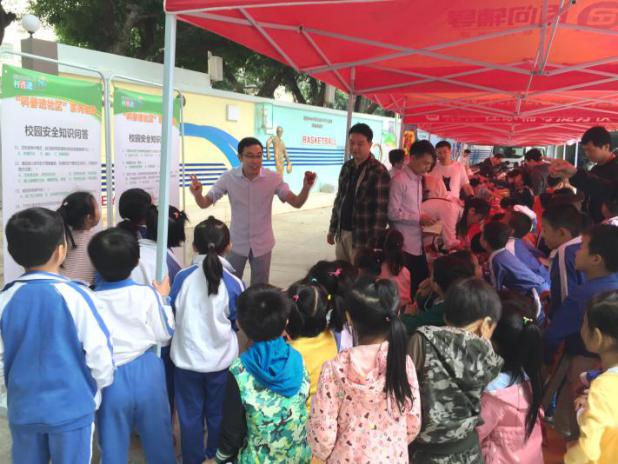 解說(shuō)員正在向同學(xué)們科普校園安全知識(shí)