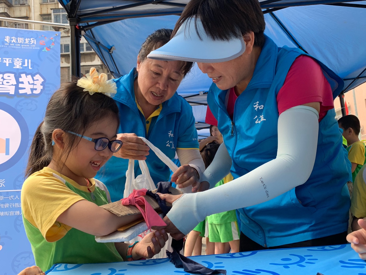 兒童平安訓(xùn)練營(yíng)活動(dòng)共有5個(gè)版塊,分別是動(dòng)感地帶、火眼金睛、鐵壁鋼手、浮力盔甲、應(yīng)急包。動(dòng)感地帶活動(dòng)版塊的主體是地震體驗(yàn)平臺(tái),通過(guò)安全教育車(chē)的地震體驗(yàn)功能,社區(qū)居民成功學(xué)會(huì)地震躲避知識(shí)要點(diǎn):規(guī)避易倒塌、易破碎、已墜落三類(lèi)物品;桌下/床下躲避跪、躲、抓三大要點(diǎn)。浮力盔甲是當(dāng)身邊發(fā)生溺水或者存在溺水隱患時(shí),可以利用身邊常用的物品比如礦泉水瓶和衣服制作緊急救生衣。鐵壁鋼手是災(zāi)害發(fā)生、救援難以及時(shí)到達(dá)情況下,利用身邊的物品,對(duì)手臂骨折者進(jìn)行簡(jiǎn)易包扎?;鹧劢鹁κ窃谠S多大地震、火災(zāi)和意外傷害中,教會(huì)學(xué)生認(rèn)識(shí)一些室內(nèi)、室外的常見(jiàn)安全隱患。