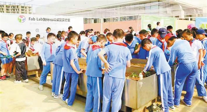 如何找到這所學(xué)校獨(dú)具特色的發(fā)展道路,吳少文一直在思考探索。在探索過(guò)程中,吳校長(zhǎng)發(fā)現(xiàn)現(xiàn)代城市兒童存在“自然缺失癥”,再加上勞動(dòng)教育的弱化,學(xué)校生態(tài)教育內(nèi)容和體驗(yàn)的嚴(yán)重缺失,都對(duì)孩子們情感、態(tài)度和價(jià)值觀塑造造成了嚴(yán)重的負(fù)面影響。面對(duì)這一現(xiàn)狀,吳校長(zhǎng)始終秉承“日新其業(yè),潤(rùn)田致真”的校訓(xùn),在“善教育,法自然”辦學(xué)理念的引領(lǐng)下,將“自然主義教育”融入學(xué)校的校本課程,以新田社區(qū)原有的“田文化”傳承為切入點(diǎn),因地制宜,在校園里開(kāi)辟一塊教育田,逐步打造校園體驗(yàn)學(xué)習(xí)空間,建立生態(tài)體驗(yàn)式實(shí)踐基地,讓孩子們?cè)跓o(wú)處不在的真實(shí)情境中學(xué)習(xí)成長(zhǎng)。