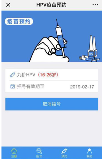 11月27日上午9:00以后,中簽者可登陸“HPV疫苗搖號(hào)”系統(tǒng)開始預(yù)約,可進(jìn)系統(tǒng)進(jìn)行預(yù)約的時(shí)間截至11月28日24:00。