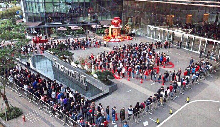▲今天是騰訊豬年春節(jié)之后首個(gè)工作日,騰訊濱海大廈廣場(chǎng)員工排隊(duì)逗利是場(chǎng)面甚是壯觀。