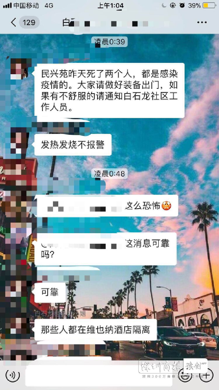 這兩天,深圳龍華白石龍村一業(yè)主群流傳著一條消息,稱白石龍村附近民興苑小區(qū)2人因感染疫情死亡,并且發(fā)燒發(fā)熱不報(bào)警。據(jù)權(quán)威部門調(diào)查,2月12日,該小區(qū)有1名男子死亡,但并非新冠肺炎所致,此消息屬于謠言。