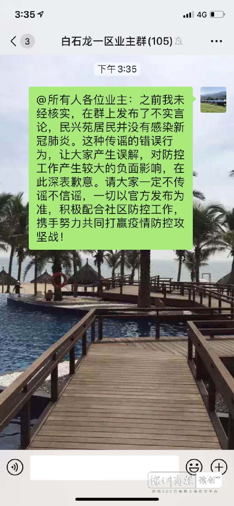 該謠言的業(yè)主道歉,稱其未經(jīng)核實(shí)發(fā)表了不當(dāng)言論,造成了負(fù)面影響。(記者 黃磊)