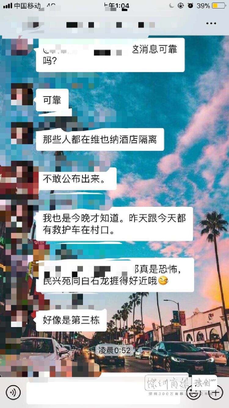 聊天截圖中,有人提出質(zhì)疑,問消息是否可靠?但該發(fā)布消息的人還回應(yīng)稱可靠,接觸者在酒店隔離開?!斑@兩天救護(hù)車停在村口,疑似事發(fā)民興苑三棟。”記者發(fā)現(xiàn),關(guān)于此消息的聊天記錄,并沒有說明消息來源。