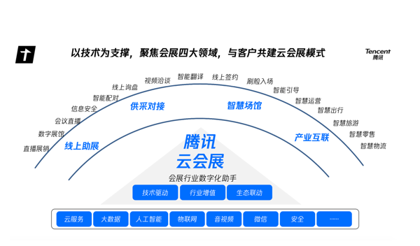 伴隨著云計算、5G、AI、大數(shù)據(jù)等技術(shù)的成熟,騰訊已經(jīng)成為多個大型會展項目提供產(chǎn)品和技術(shù)服務,不斷實踐和探索線上線下融合的產(chǎn)品技術(shù)及綜合解決方案。騰訊云會展打造的有別于實體觀展模式的新思路和新玩法,包括線上展覽、智慧展會、云展覽等形式,也正為各級政府和企業(yè)激活云上經(jīng)濟注入新動能。