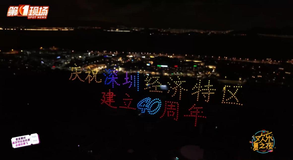 作為本次直播的協(xié)辦單位,深圳世界之窗、深圳錦繡中華·中國民俗文化村、深圳歡樂谷和深圳歡樂海岸,積極配合響應(yīng),用最“青春”的玩法吸引最“潮流”的年輕人。直播的最后,恢弘燈光秀、絢爛煙火展、競速無人機點亮深圳夜空,千架無人機同時升空幻化鵬城美景,變幻出“慶祝深圳經(jīng)濟特區(qū)建立40周年”等字樣,為深圳獻禮。