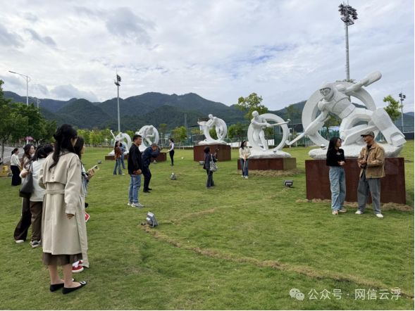 網(wǎng)絡(luò)達(dá)人首先集中于市體育公園曲棍球運(yùn)動(dòng)雕塑處,一邊自主采拍雕塑的靈動(dòng)造型、模仿雕塑所展示的各種動(dòng)作,一邊與雕塑創(chuàng)作者梁建坤大師面對(duì)面