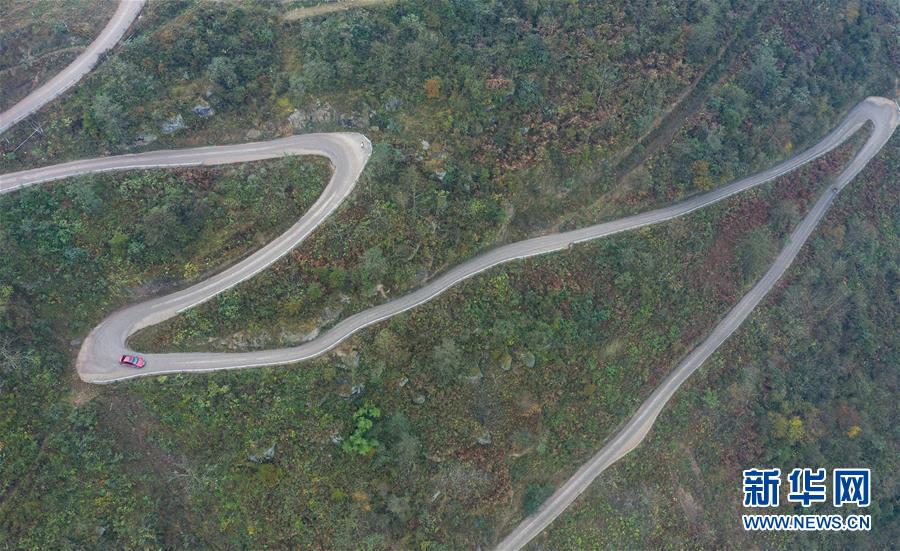 曾柱銘開著自己的小轎車行進(jìn)在雷波縣箐口鄉(xiāng)厥箕村的山道上(2019年12月12日攝,無(wú)人機(jī)照片)。新華社記者江宏景攝