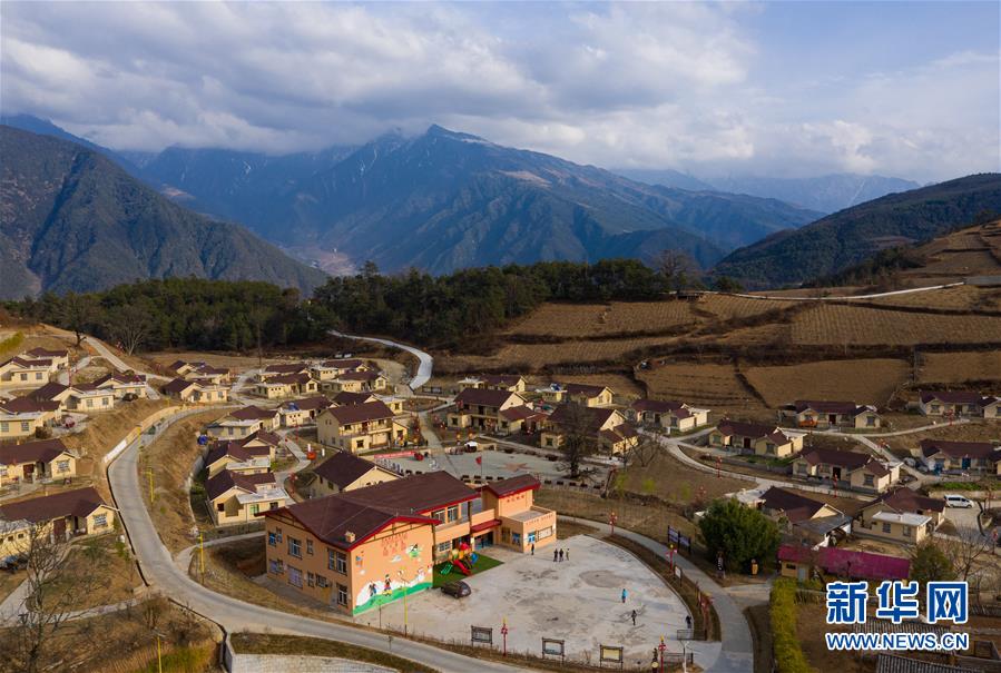 這是四川省冕寧縣彝海鎮(zhèn)彝海村彝海結盟新寨(2019年3月11日攝,無人機照片)。新華社記者江宏景攝
