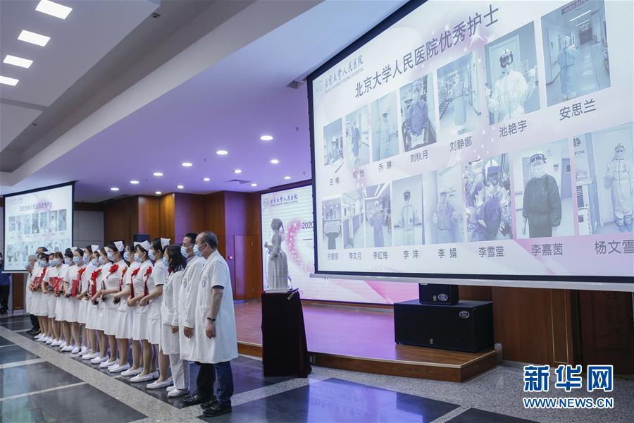 5月11日,獲獎護士在護士節(jié)活動上合影。在國際護士節(jié)到來之際,北京大學(xué)人民醫(yī)院11日舉辦慶祝護士節(jié)暨優(yōu)秀集體和個人表彰活動,并邀請援鄂醫(yī)療隊護士代表分享戰(zhàn)“疫”故事。我國今年護士節(jié)的主題為“致敬護士隊伍,攜手戰(zhàn)勝疫情”。新華社記者張玉薇攝