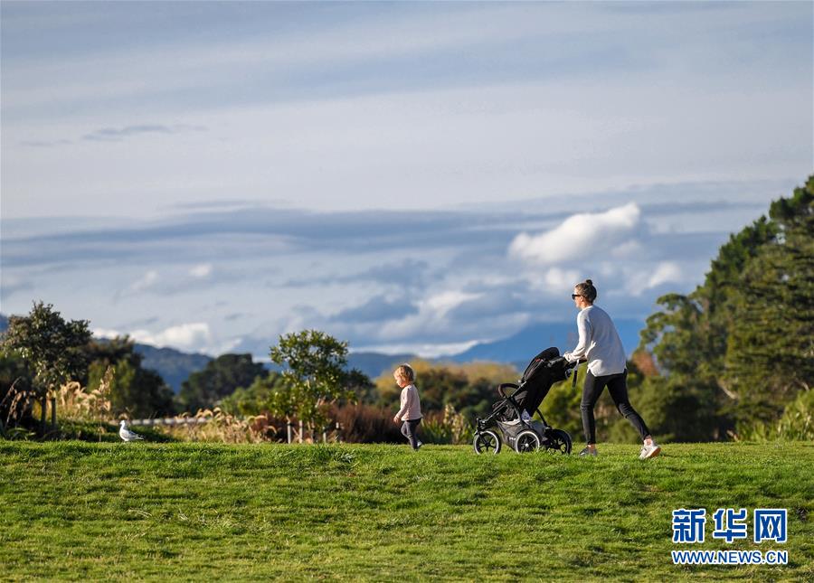 5月14日,在新西蘭首都惠靈頓郊外的公園,一名女子推車帶著孩子穿過(guò)草地。當(dāng)天是新西蘭從新冠疫情防控響應(yīng)三級(jí)下調(diào)到二級(jí)的第一天,經(jīng)濟(jì)活動(dòng)全面重啟,公園等公共設(shè)施首次重新開放,中小學(xué)生將于5月18日全面返校復(fù)課。新華社記者郭磊攝