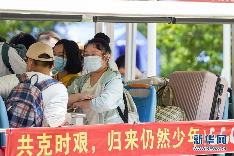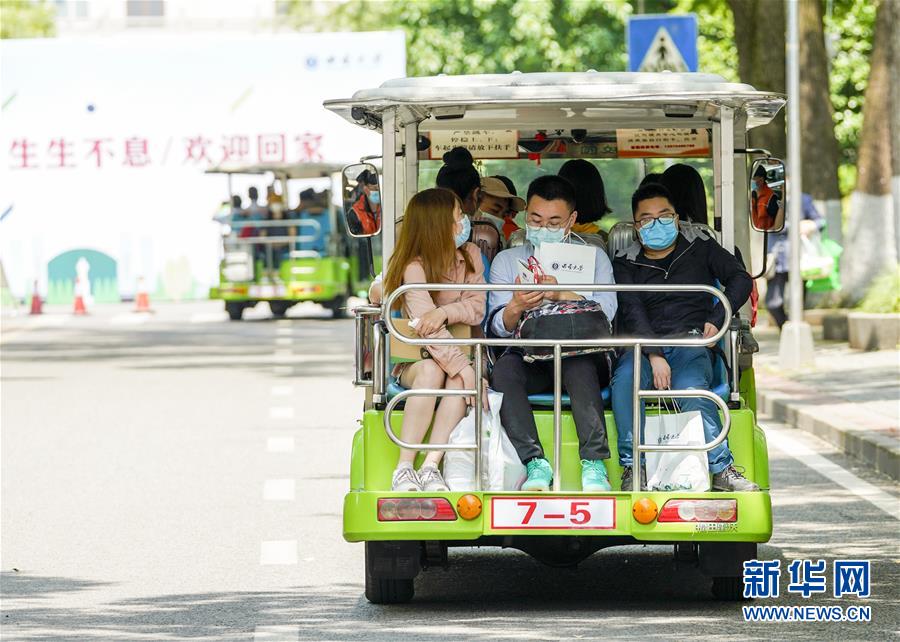 5月15日,在西南大學(xué)校園內(nèi),學(xué)生們搭乘校內(nèi)轉(zhuǎn)運(yùn)車前往各自的宿舍。當(dāng)日,重慶西南大學(xué)迎來疫情以來首批返校大學(xué)生。據(jù)介紹,按照疫情防控的需要,重慶市高校2020年春季學(xué)期從5月11日起按照“一校一策”原則,實(shí)行錯(cuò)峰錯(cuò)時(shí)分批次有序開學(xué)復(fù)課。新華社記者劉潺攝