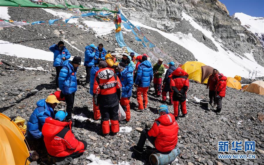 5月18日,沖頂隊員名單公布后,隊員們在進(jìn)行相關(guān)準(zhǔn)備工作。新華社特約記者扎西次仁攝