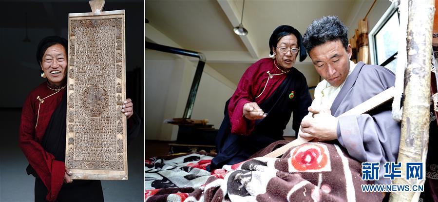 拼版照片:左圖為西藏昌都市江達縣波羅鄉(xiāng)外沖村村民澤培;右圖為在江達縣波羅鄉(xiāng)木松民族手工藝有限責(zé)任公司,澤培(左)在指導(dǎo)學(xué)生。澤培是當?shù)刂牟_木刻藝人,波羅木刻由于做工繁復(fù),太消耗體能,收入不高,波羅木刻藝人的數(shù)量在過去幾十年間急劇減少。為保護和傳承波羅木刻,近年來,江達縣成立了波羅鄉(xiāng)木松民族手工藝有限責(zé)任公司。澤培招收了幾十名學(xué)徒傳授技藝,經(jīng)過練習(xí),學(xué)徒們已經(jīng)成為熟練的木刻藝人,每人每月有4000多元的收入(5月1日攝)。新華社記者詹彥攝