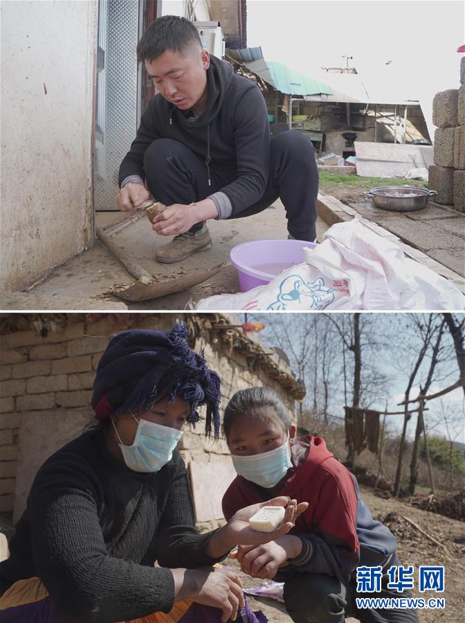 拼版照片上圖:在四川省涼山彝族自治州美姑縣瓦古鄉(xiāng),彭楊在削土豆皮,準備制作土豆手工皂(3月10日,新華社記者吳光于攝);下圖:在瓦古鄉(xiāng),15歲的沙馬也曲(右)和她的媽媽拿到了彭楊制作的土豆手工皂(3月10日,新華社記者薛晨攝)。四川省涼山彝族自治州美姑縣瓦古鄉(xiāng)扶貧干部彭楊所在的古覺村距鄉(xiāng)政府20公里,是美姑縣80個尚未脫貧村之一。他深知養(yǎng)成好的生活習慣,對當?shù)孛撠氈陵P重要,所以他不僅督促老百姓疊被子、整理房間,幫當?shù)氐暮⒆觽兿搭^、洗澡,還在疫情期間自制土豆手工皂分發(fā)給村民。彭楊說,疫情后準備發(fā)動留守婦女生產(chǎn)手工皂,計劃在1年內(nèi)建成一個吸納瓦古鄉(xiāng)4個村村民的手工皂合作社。黨的十八大以來,我們堅持以人民為中心的發(fā)展思想,明確了到2020年我國現(xiàn)行標準下農(nóng)村貧困人口實現(xiàn)脫貧、貧困縣全部摘帽、解決區(qū)域性整體貧困的目標任務。目前看,脫貧進度符合預期,成就舉世矚目。這些成績的取得,凝聚了全黨全國各族人民智慧和心血,是廣大干部群眾扎扎實實干出來的。脫貧摘帽不是終點,而是新生活、新奮斗的起點。新華社發(fā)