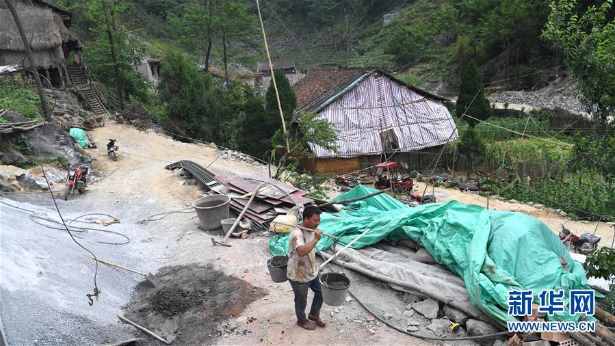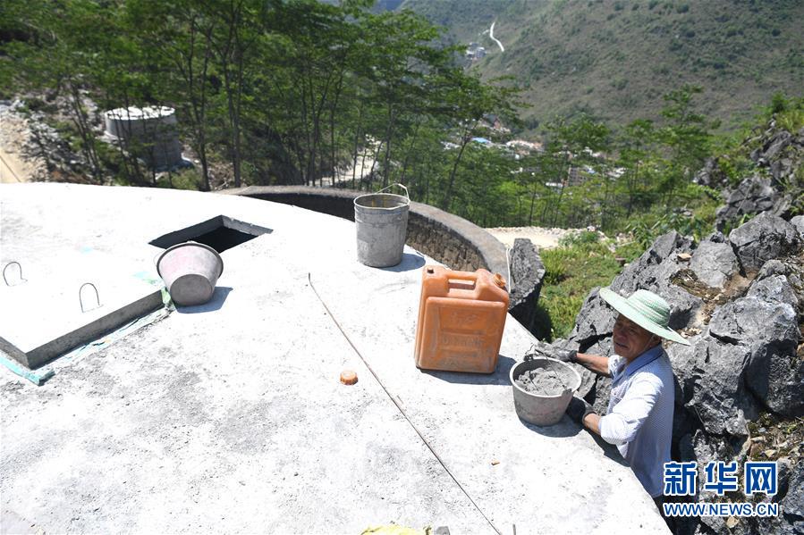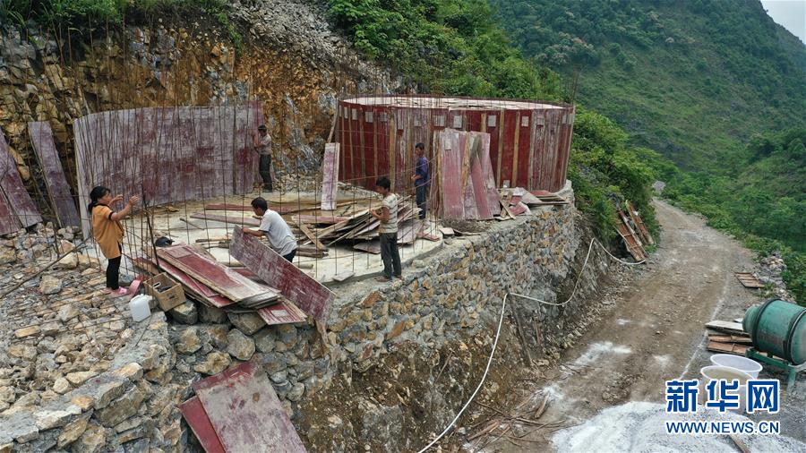 大化瑤族自治縣雅龍鄉(xiāng)勝利村群眾在建設(shè)水柜(2019年6月6日攝)。新華社記者張愛林?jǐn)z