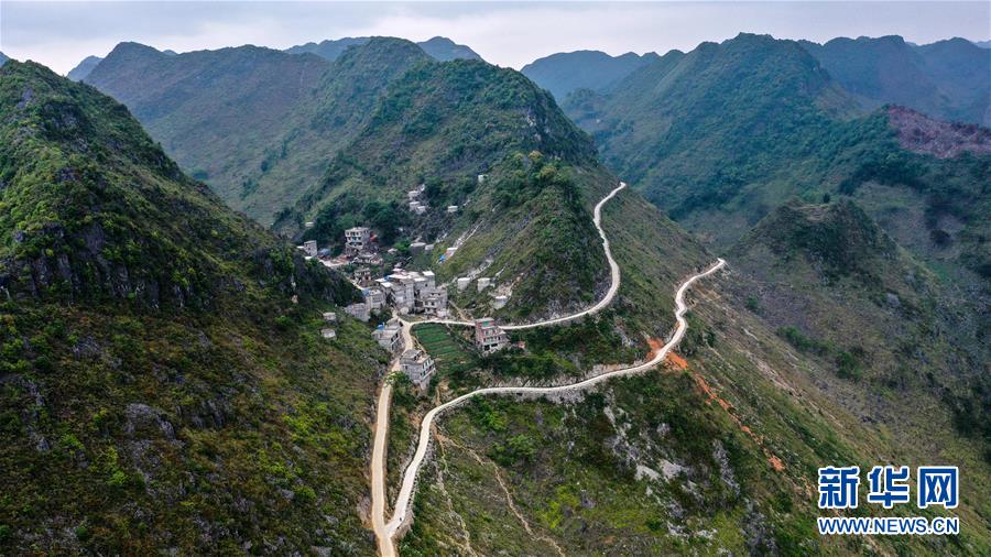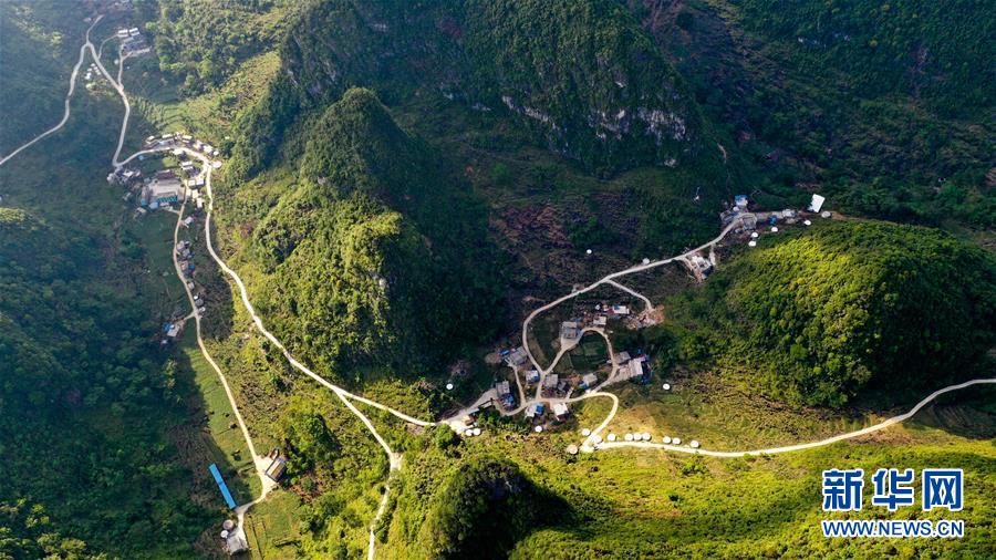 這是2019年底通車的大化瑤族自治縣七百弄鄉(xiāng)弄平村的進(jìn)村路和水柜(5月14日攝,無人機(jī)照片)。新華社記者曹祎銘攝