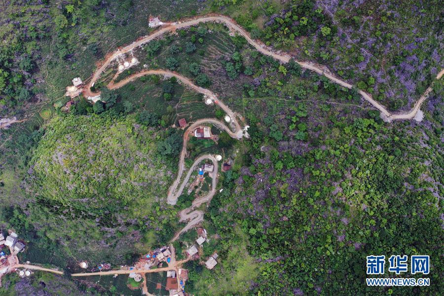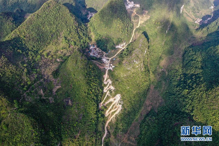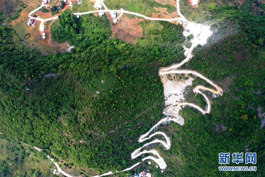 這是通向大化瑤族自治縣七百弄鄉(xiāng)弄平村的山路(5月15日攝,無人機(jī)照片)。新華社記者曹祎銘攝