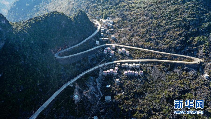 這是大化瑤族自治縣江南鄉(xiāng)上和村群眾修建的水柜(2019年12月12日攝,無人機(jī)照片)。新華社記者張愛林?jǐn)z