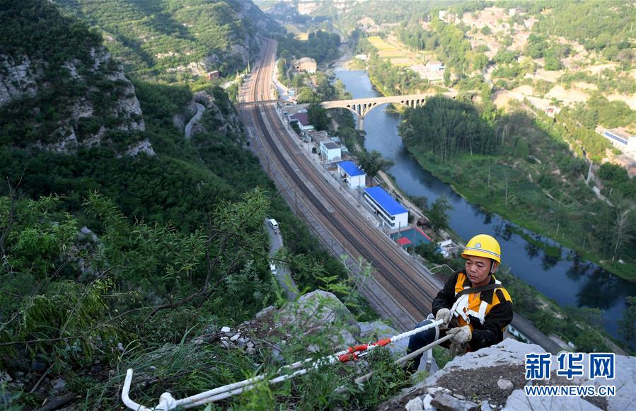 在太行山深處的中國鐵路鄭州局集團有限公司月山工務(wù)段,有一群被稱為捅山工的人。每年汛期來臨前,他們要對山體進(jìn)行檢查、清理,在懸崖峭壁間“行走”,揮動著手中的鋼釬,排除威脅鐵路行車安全的危石。