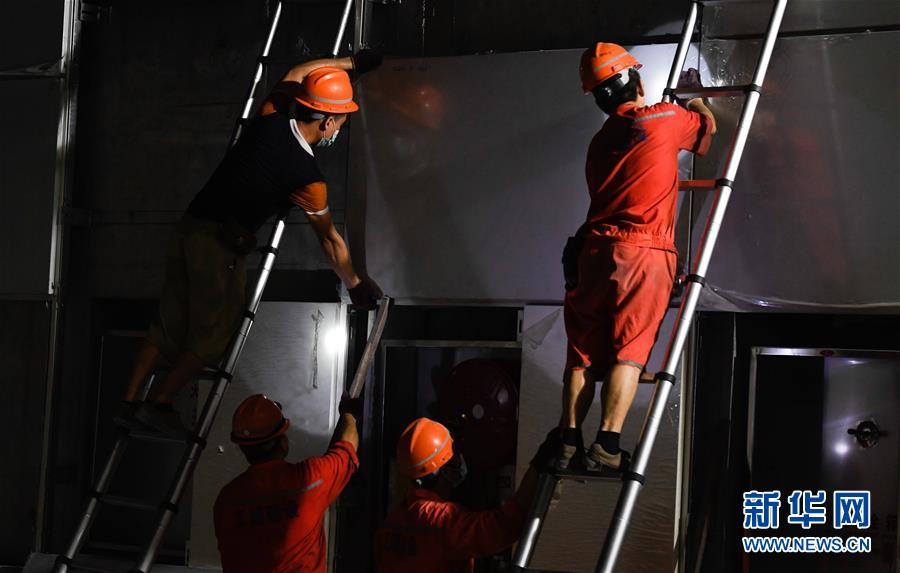 5月23日,工人在海口文明東越江通道項目隧道內(nèi)安裝照明設(shè)備。新華社記者楊冠宇攝