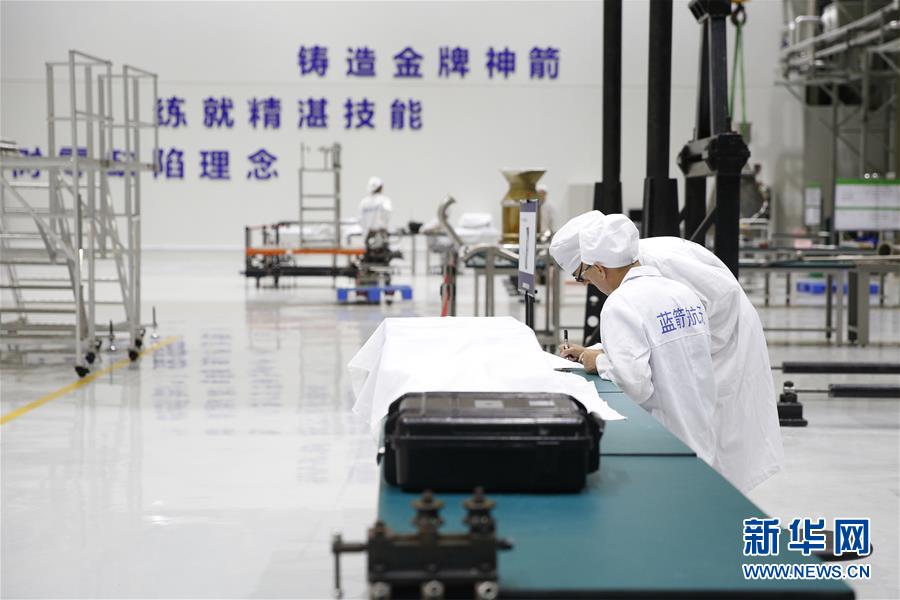 5月26日,工作人員在藍箭航天智能制造基地發(fā)動機裝配區(qū)內進行發(fā)動機質檢工作。新華社記者張玉薇攝