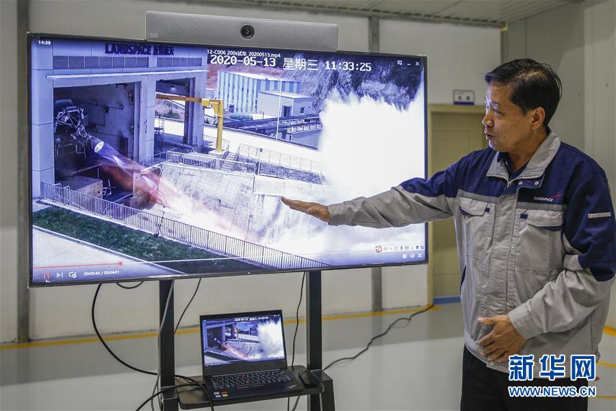 5月26日,藍箭航天技術有限公司總經理杜方平介紹發(fā)動機點火試驗。新華社記者張玉薇攝