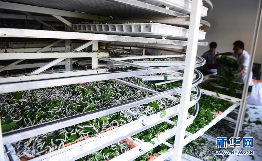 5月29日,奉節(jié)縣新民鎮(zhèn)中嶺村蠶桑產業(yè)扶貧基地工作人員在智慧蠶房內作業(yè)。新華社記者 王全超 攝