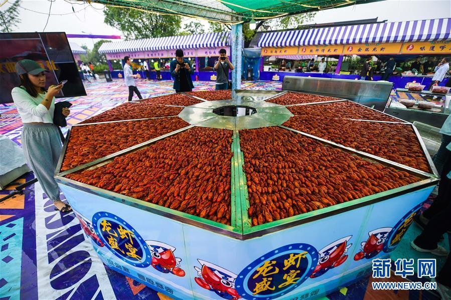 5月30日,游客在龍蝦狂歡節(jié)現(xiàn)場拍攝小龍蝦。新華社記者徐昱攝